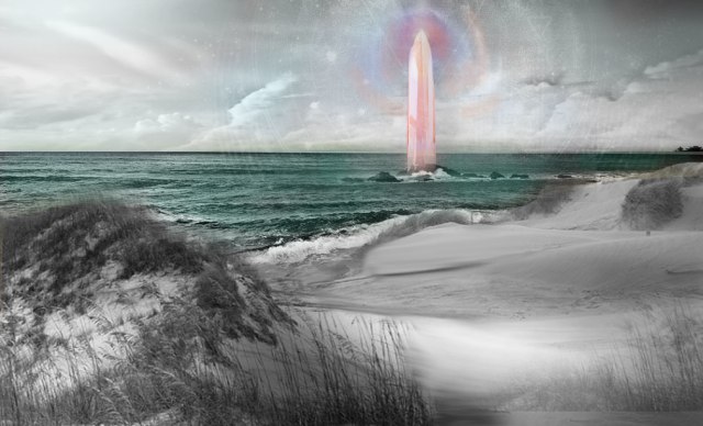 This one should be recognizable from the header of the blog. Erestoia By-The-Sea is a location in book 2 — that shiny crystal tower there. This version is the digital composite made for me by my friend Alexandra Fitzgerald.