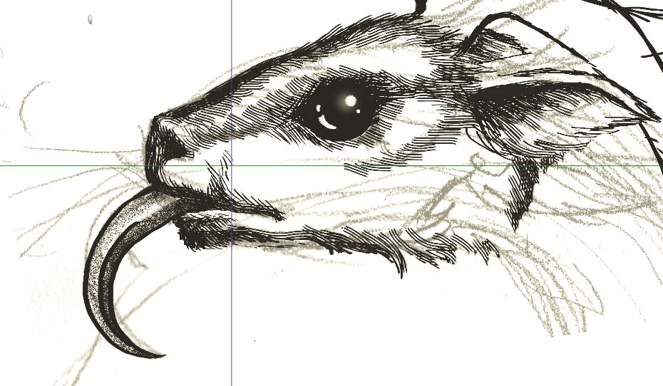This is the super-rough sketch form, of course. My artist has started on the inks now, and this is the Guardian’s face so far: