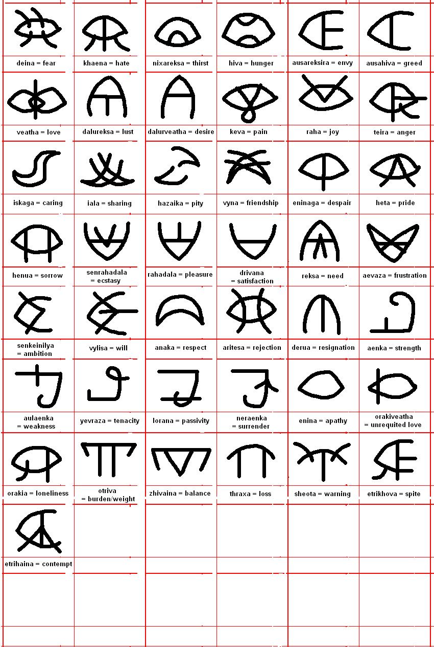 I’ve already made a few posts involving my made-up language, Gheshvan: one involving the base-six number system (which might have gotten a bit ridiculous there at the end) and the other with the phonetic alphabet. I might have mentioned in those posts that I planned to do a larger pictographic variant of the written language — not just the phonetic alphabet but a sort of Japanese conglomeration of phonemes and pictographs/ideographs.