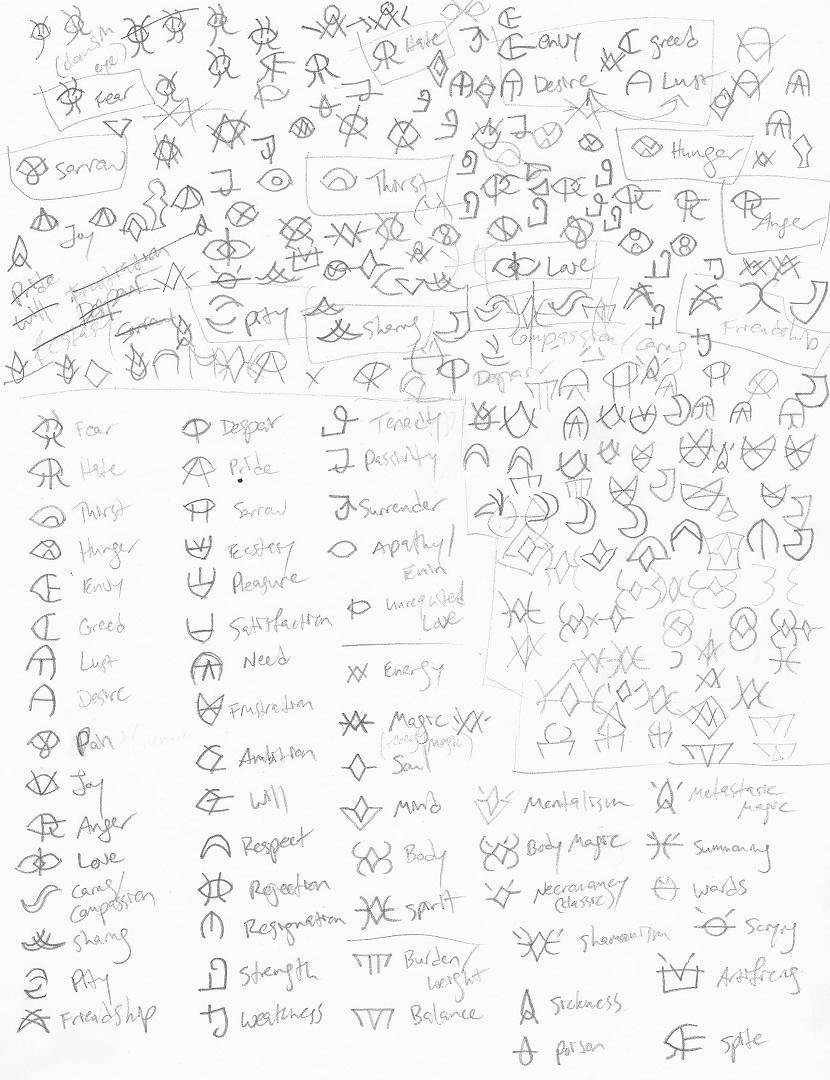 I only have a few images for this so far — I scribble the pictographs while I’m watching TV, which I don’t do very often, since when I’m at the computer I’m way too easily distracted by maps or the internet or whatever. Nevertheless they should give a basic idea for what I’m doing.