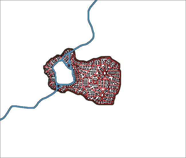 So, because I already had a sketch of the shape I wanted Ghezidun to be, I started with that. I knew that a lake had to be involved, because Ghezidun was an ogrish city, so I built an appropriate topology under it, taking into consideration the older maps.
