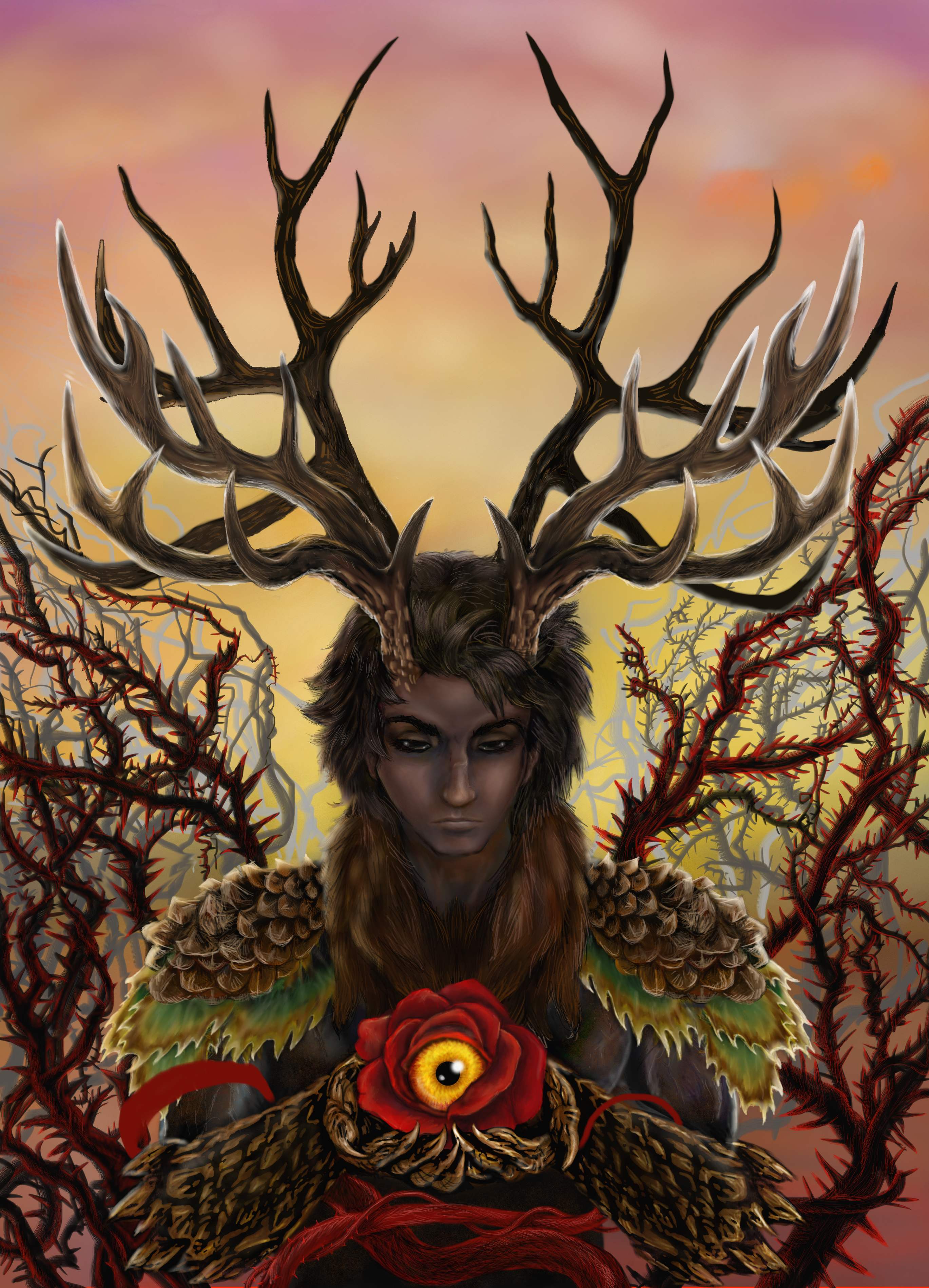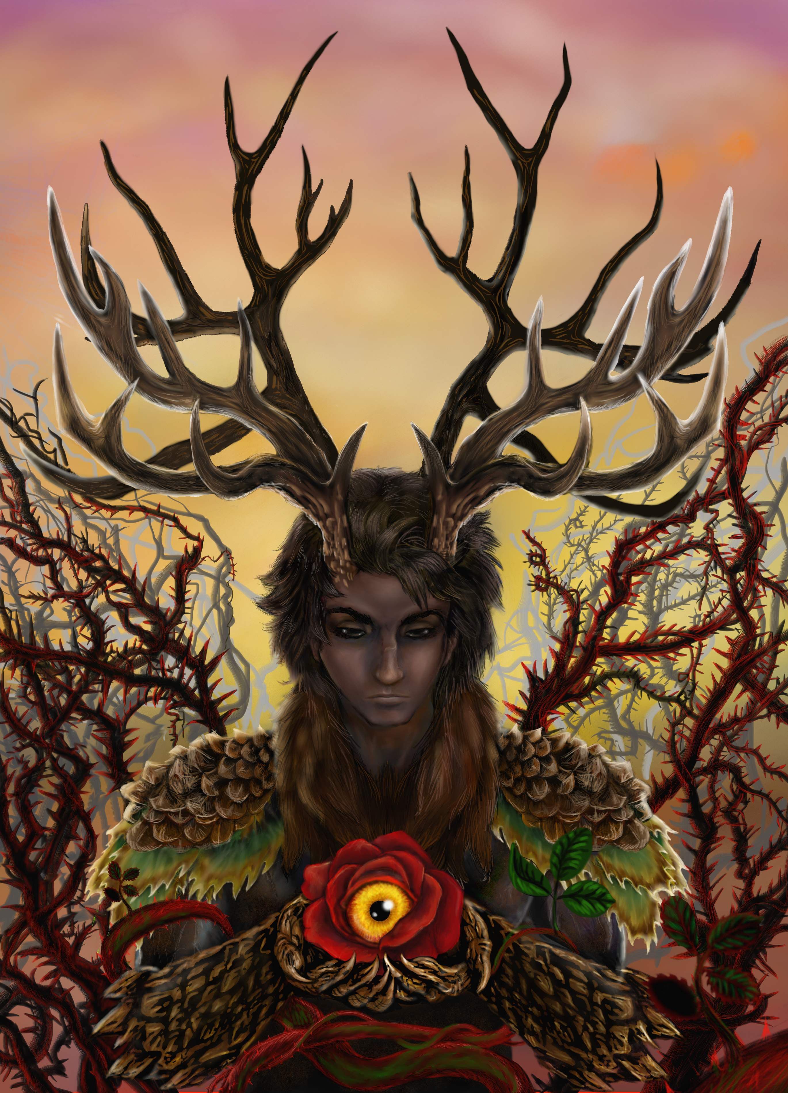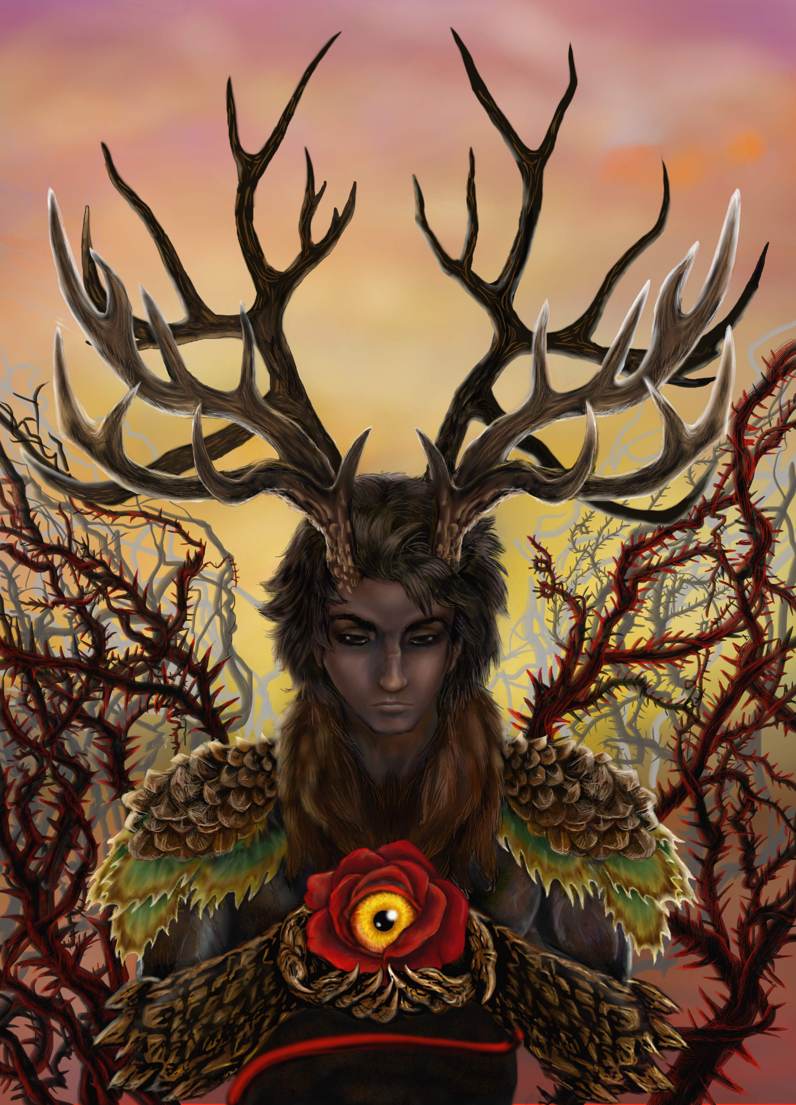 Previously, Cob’s figure was more or less finished, but we were contemplating a third set of antlers — which I liked as an idea, but I didn’t want them too symmetrical. So the artist made these: