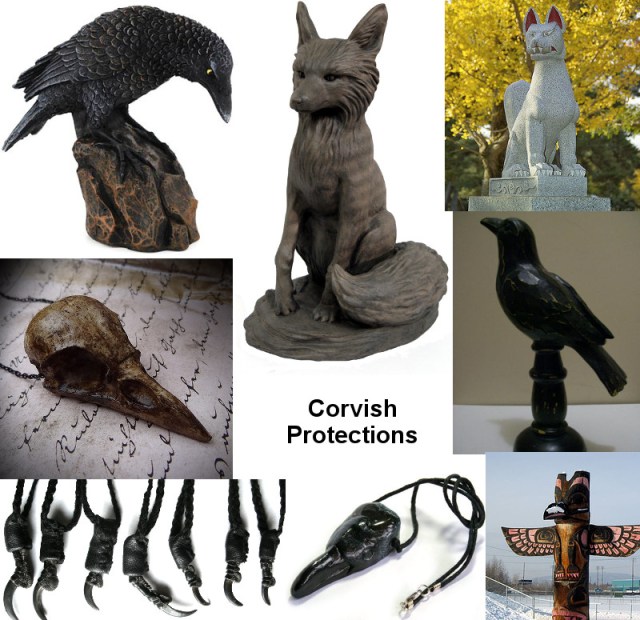 Fox skinchangers and their human kin usually live together in family dens or larger multi-family compounds, which most often consist of a small village inside a wooden palisade which backs up to a more extensive cavern system. Many of the village buildings can be dismantled quickly if the compound comes under threat, and its components smuggled out from one of the many exits the cave system provides so that the clan can set itself up quickly somewhere else. The compounds are also protected by servitor spirits of the two parent-spirits who watch over the Corvish: Daxfora the Slinker and Zolvin T’okiel, also known as Grandmother or Grandfather Crow. Most often, these spirits possess wooden or stone statues of their respective creature, which animate to defend the compound when needed.