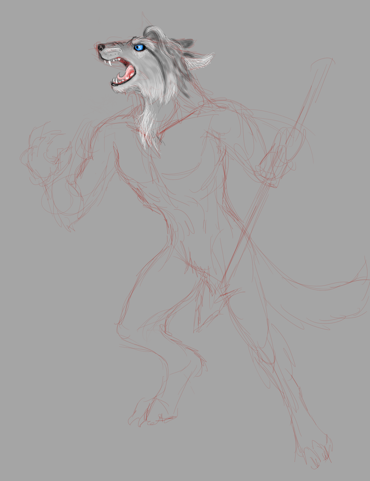 Because of his coloration, I’ve decided that he’s a near-surface goblin. Those that live in the deeper caverns are paler, shading down to a sort of albino-grey. His war paint is made from phosphorescent fungi, the specific type of which I need to rename because it’s one of the many things I named in pretend-Latin and must rework.
