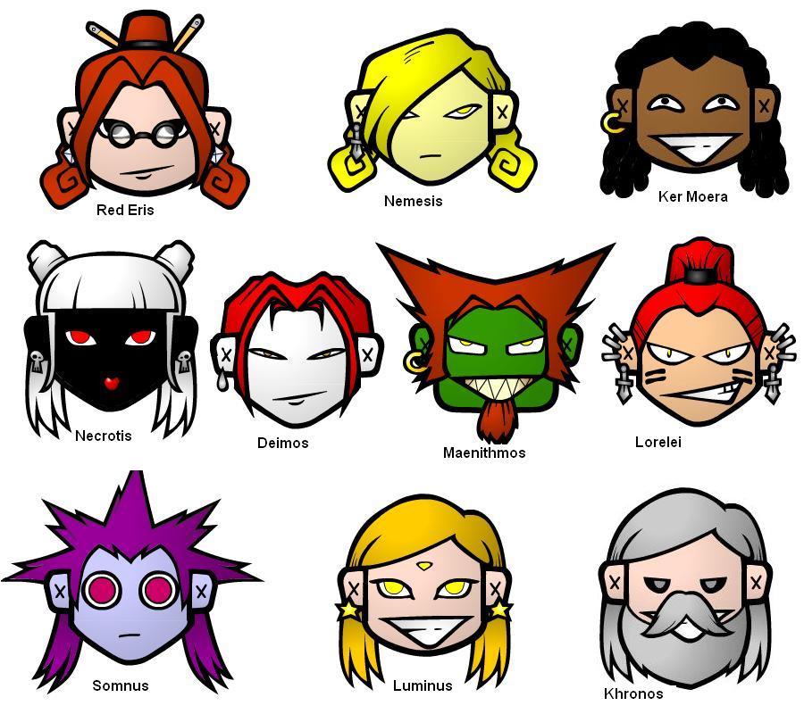 So I’ve been tinkering around with the Rinmaru games some more because I can’t help myself, and decided to create a bunch of characters I haven’t worked on in ages — not since the last cartoony character-creator I got sucked into, back when they all had Greek names because that’s what I was doing at the time. (According to the stamp on the file, that time was 2004.)