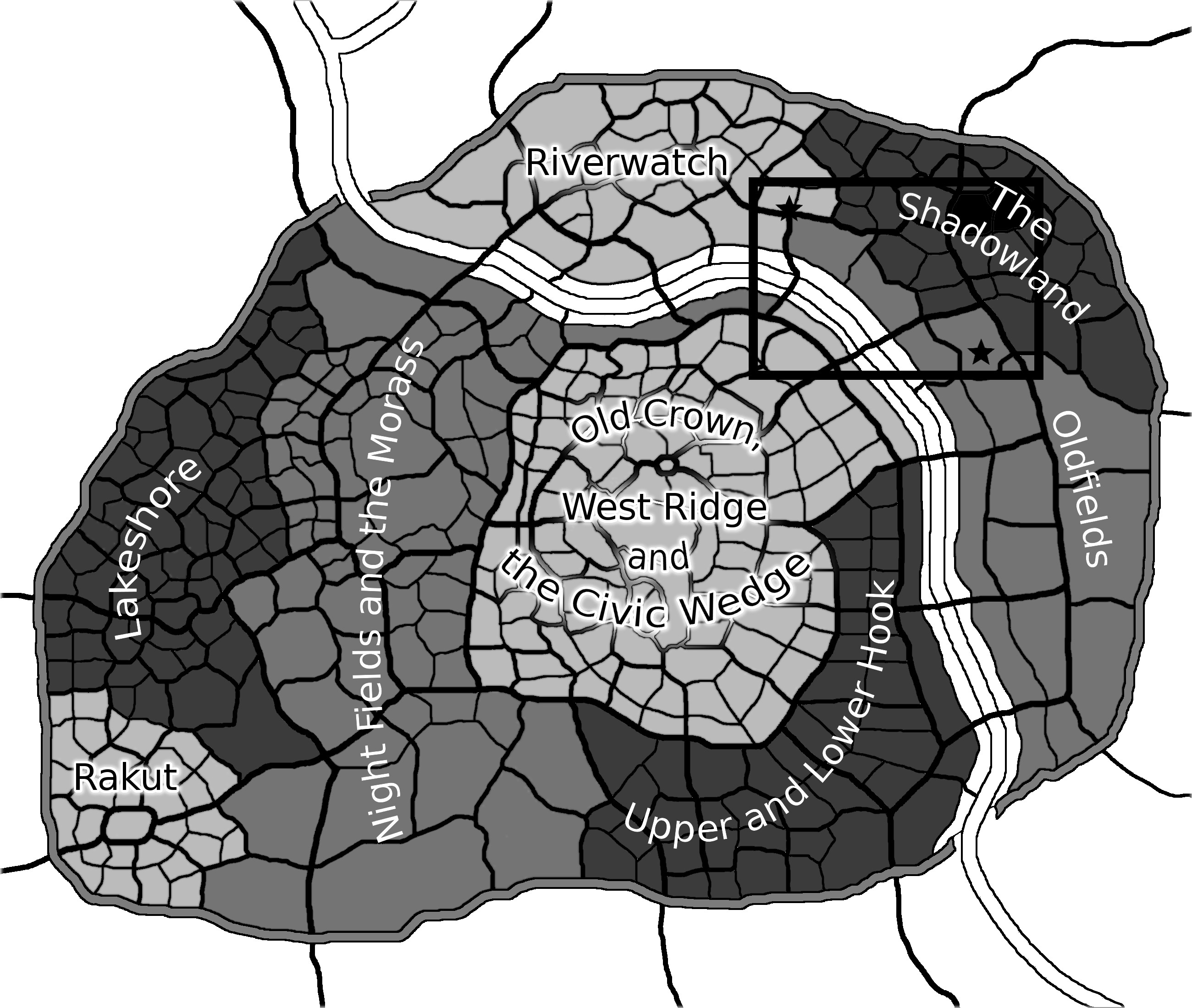 I’ve also needed to finish up the Bahlaer city map, and while I’m still not satisfied with it, this should do for a broad area-view of it:
