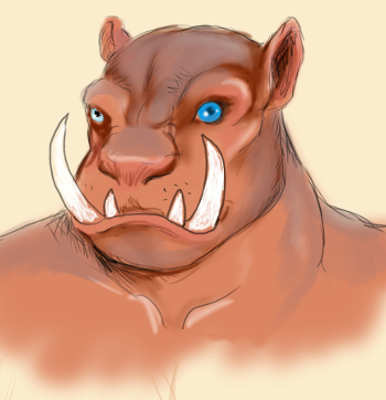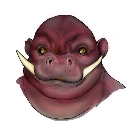She’s done a bit of ogre work for me before, as seen in the sidebar, but we never got proper finished/colorized versions together.  This time though, she went researching hippos (which are the base for my ogres) and got me the tusk types below.  Alas, while tiny hippo ears are almost unbearably cute, they’re a little too hippo, and I was concerned that on the more greenish-skinned ogres they’d start to look a bit….Shrek.  So after the pic below, the ears get shifted larger and downward.