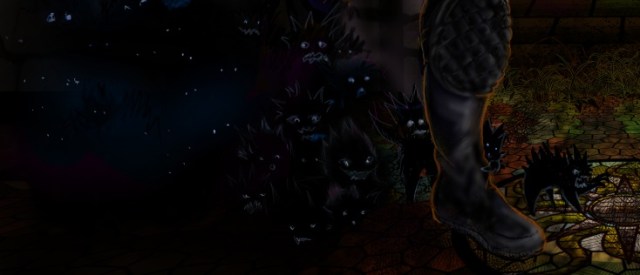 By her feet! And on Morgwi’s head! Morgwi’s floating disembodied head.