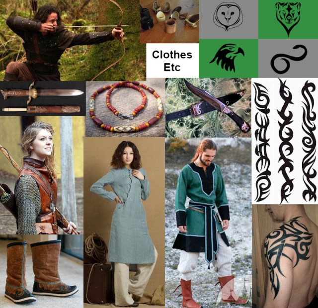 Darronwayn generally build in wood and stone, but aren’t fussed about repurposing a cave or digging a den beneath a hill. Likewise, they have various ways of interring their dead, from sky burial to earth burial to cliff burial — as seen in the image above, top right. The cliff wall behind Fort Krol is a particularly popular burial site, filigreed to an almost dangerous degree by tunnels and walkways and niches that have been carved over millennia to house the bones of its fallen people.