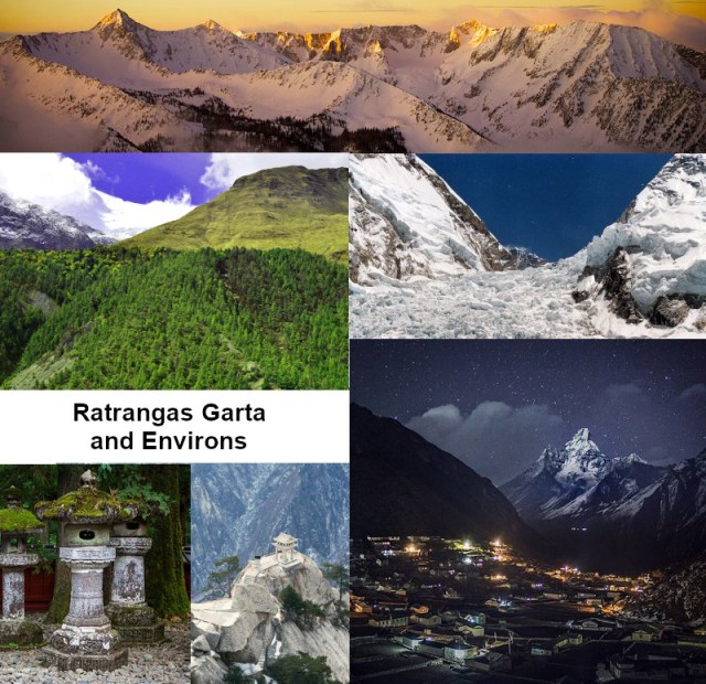 Ratrangas Garta/Howling Spire gets its name from the titanic silver spires that rise from the peak of the mountain, the remnant of an ancient (and aborted) attempt to harness the power of the stars. If you imagine them just peeking up from the top of the mountain in the lower right-hand picture, that would be about right.