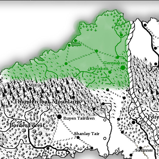The Empire is not unaware of this. However, between the difficulty of moving troops through Daecia Swamp, the indifference of the Darronwayn people toward pushing the fight beyond their own borders, and the formidable barrier created by the Khaeleokiel Mountains, it has proven impossible for the Empire to push the Krovik forces back permanently — or even consistently. The lands north of the Daecia Swamp are taiga and tundra, alternately frozen and hideously marshy, and every effort to bring the larger armies of the Heartlands to bear upon the Krovik problem has failed.